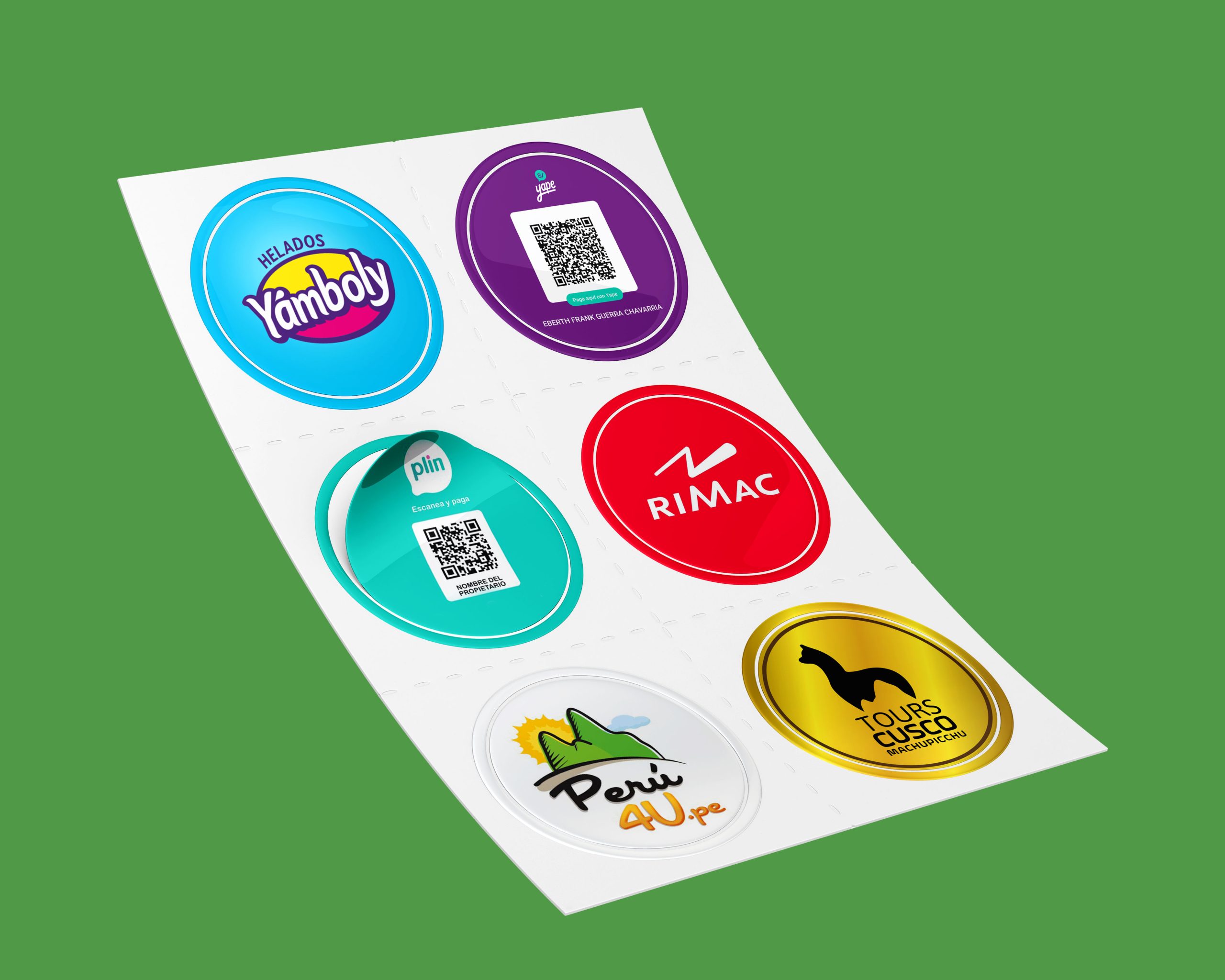 - Diseño y producción de etiquetas adhesivas (pegatinas) con calidad superior.